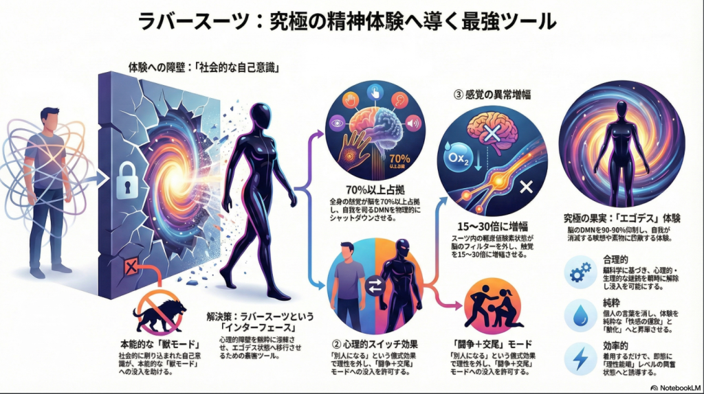 ### 第2章:ラバースーツの科学的効果:障壁の解除とエゴデス導入