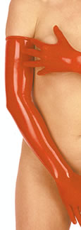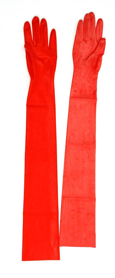 存在感で威圧する肩までの長さのラバーグローブです。一体成型タイプ。主に男性向けのサイズです。 【MARQUISの商品との違い】色が朱色っぽい。手首のところで切り返しがない(一体成形となっている) ●サイズ 商品の実寸は下記のとおりです。ラバーは数センチ伸びますので、下記寸法よりお客様のサイズが多少大きくてもたいてい着られるはずです。ご希望の拘束感に合わせて、下記寸法を目安にお選び下さい。 【手の甲の外周(すぼめたとき)】19センチ 【全体の長さ(中指の先から入れ口のはしまで)】67センチ 【中指の長さ】8.5センチ 【入れ口外周】24センチ 【手首の外周】17センチ ●光沢剤を塗らないとツヤが出ません。当サイトのラバー表面ツヤ出しリキッド「スベリ王ラバピカ」をお薦めします。